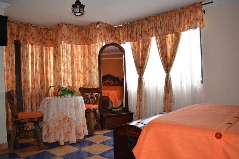 Amplia habitación con ventanales, closet, comedor privado para disfrute de su desayuno o comodidad para trabajar para que su experiencia sea más placentera Decoración estilo colonial acorde con el entorno que disfrutara en su estadía en el Paisaje Cultural Cafetero. En cada piso encontrara una habitación de este tipo con diferente color según su gusto.